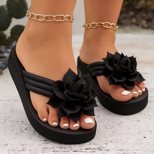 View full detailsLadies' Flip Flops with Platform Sole and Flower Detail Wide Fit