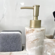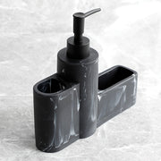 This kitchen soap dispenser combines functionality with a luxurious appearance for a tidy workspace. The sturdy polyresin material ensures stability and a high-quality finish suitable for daily use. Thanks to the integrated holders, the brush and sponge remain organised and within easy reach. The freestanding design eliminates the need for installation and allows for immediate placement on the countertop.