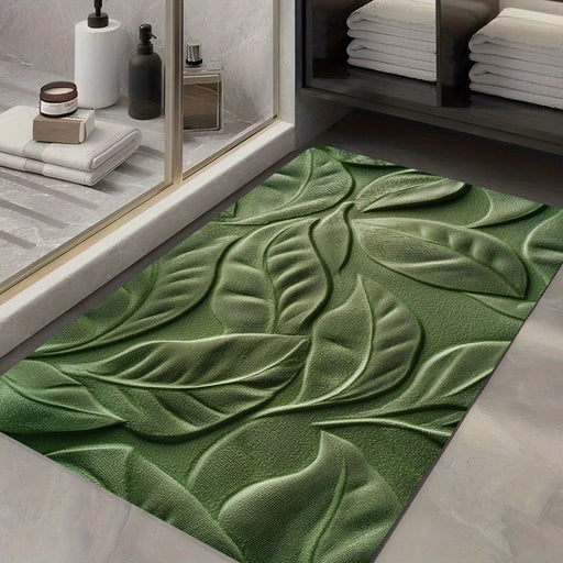 Diatomaceous Earth Bath Mat with Green Leaf Pattern – Absorbent and Quick-Drying