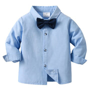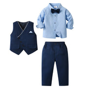 Chic Boys' 3-Piece Suit – Blue Shirt, Waistcoat and Trousers with Bow Tie